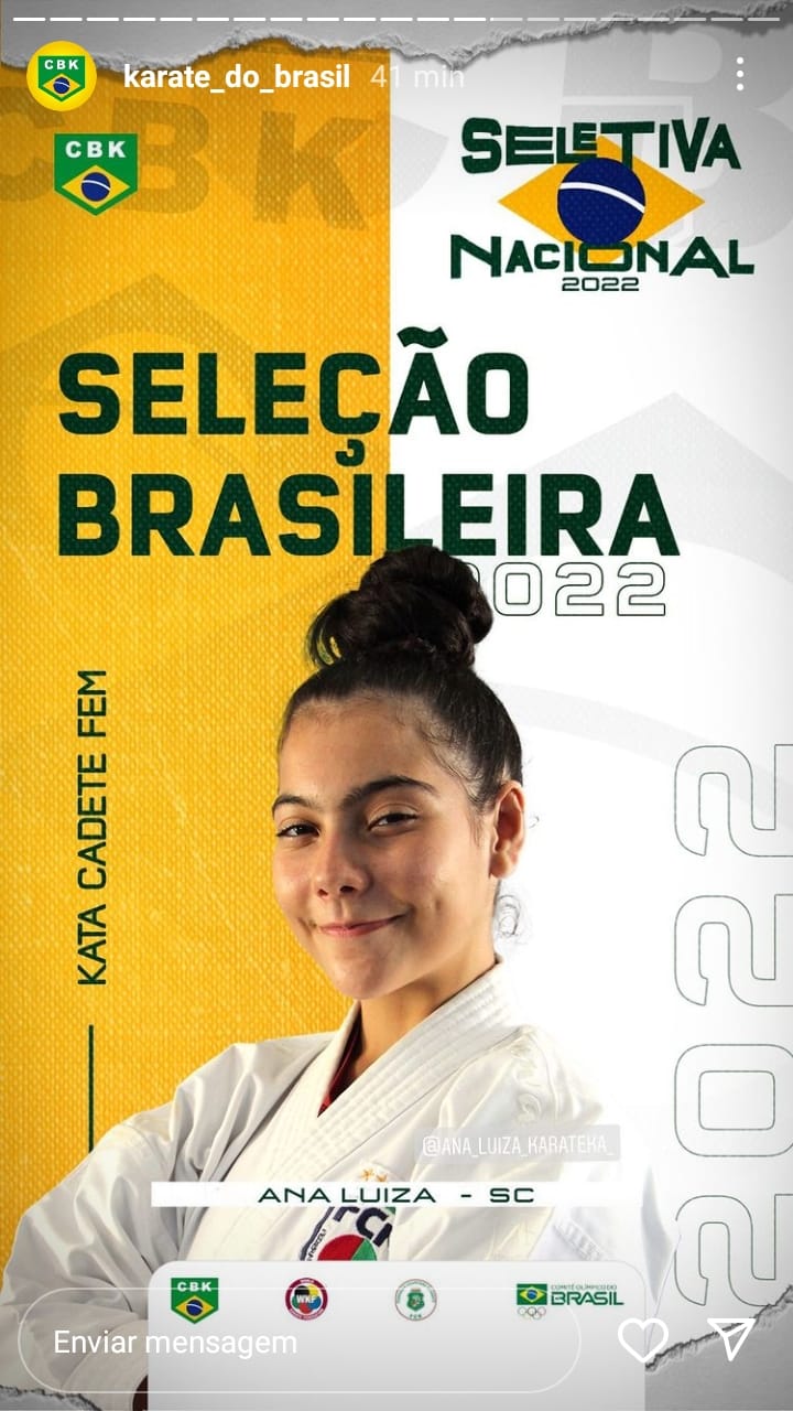 Depois de conseguir a tão sonhada vaga na Seleção Brasileira de Karatê. A atleta Jaguarunense  Ana Luiza vai disputar o Sulamericano de Karatê no Equador nos dias 18 a 24 de abril. E precisa de apoio para custear a passagem de avião e alimentação. Colabore com o sonho da atleta de participar de uma competição internacional. Oportunidade de levar a sua marca/produto a um pódio internacional