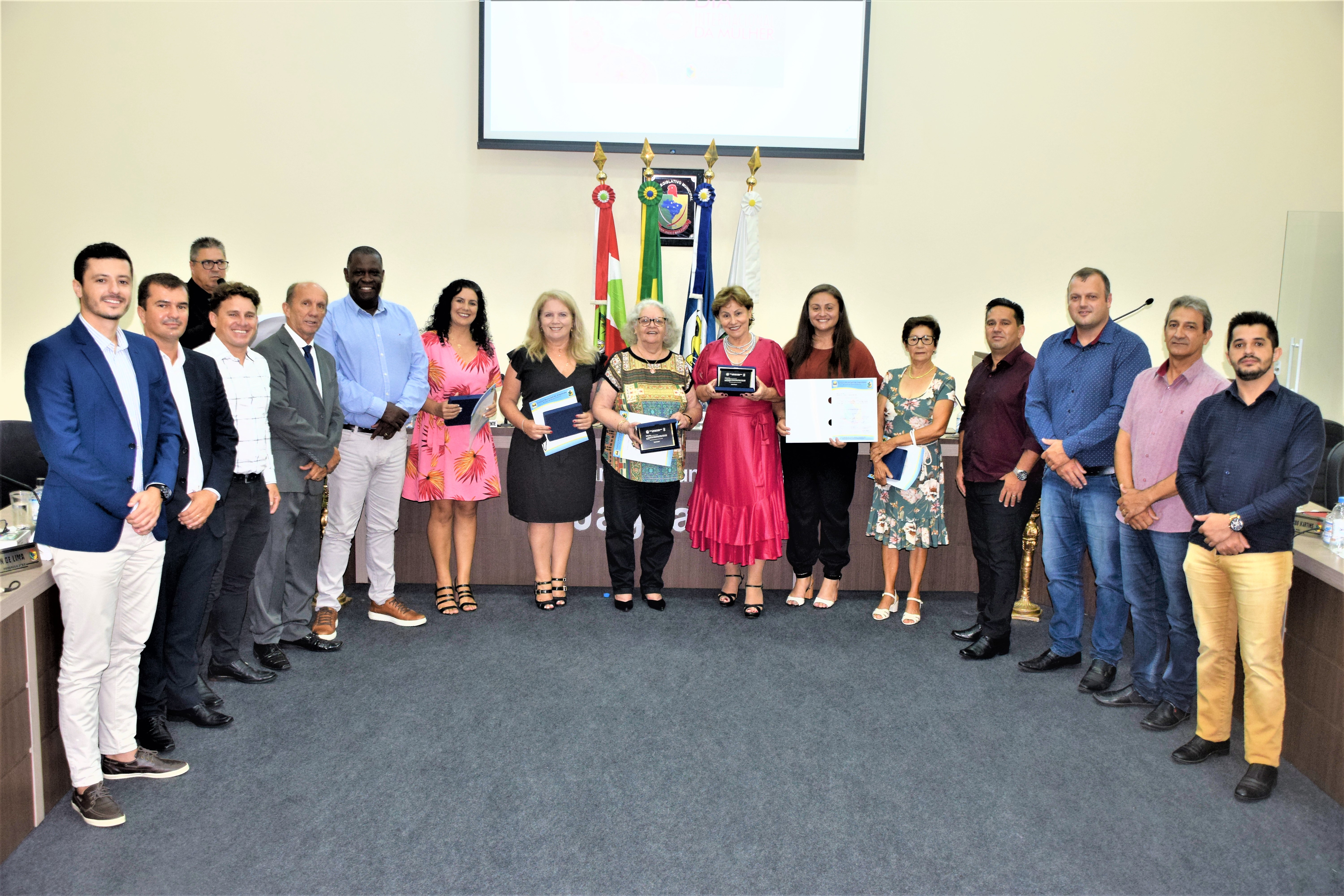 A sessão do Legislativo Jaguarunense  que ocorreu nesta última quarta feira( 09),contou também com um evento de homenagens a cinco  Ex- vereadoras pela passagem do dia 08 de março dia internacional da mulher.