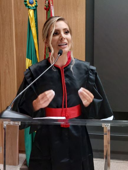 Lanna Gabriela Bruning Simoni, recém-empossada Promotora de Justiça Substituta, discursou em nome dos novos Membros. A Promotora de Justiça destacou as mazelas resultantes da pandemia da covid-19, o papel social do Ministério Público e a esperança no futuro. “Perpassamos o abismo de um tempo das trevas. A pandemia da covid-19 nos trouxe muitas dores, angústias, medos e perdas. Nos sentimos impotentes diante de uma guerra silenciosa tornada ainda mais sinistra, e talvez mais longa, pelas mãos dos nossos governantes que, por vezes, tentaram ignorar as luzes da ciência”, considerou.