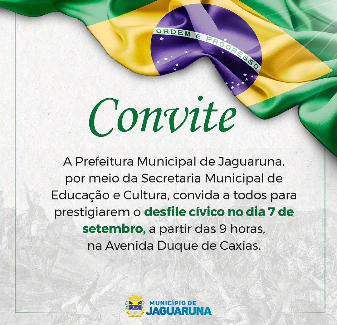 Secretaria Municipal de Educação e Cultura de Jaguaruna Convida Para o DEsfile Cívico de 7 de Setembro