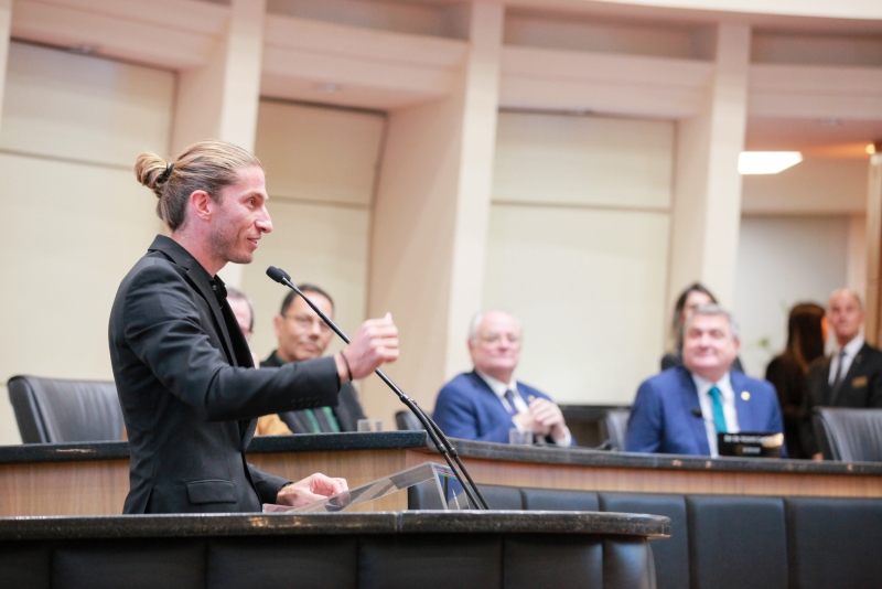 Também participou do evento o deputado Emerson Stein (MDB), que também fez questão de prestar seu reconhecimento à trajetória de sucesso do atleta, avaliando que “Filipe Luís é uma personalidade que é exemplo para Santa Catarina”. “Pela sua caminhada vitoriosa e por tudo o que representou e representa é uma inspiração para todos nós, em especial para os jovens e crianças”, disse.