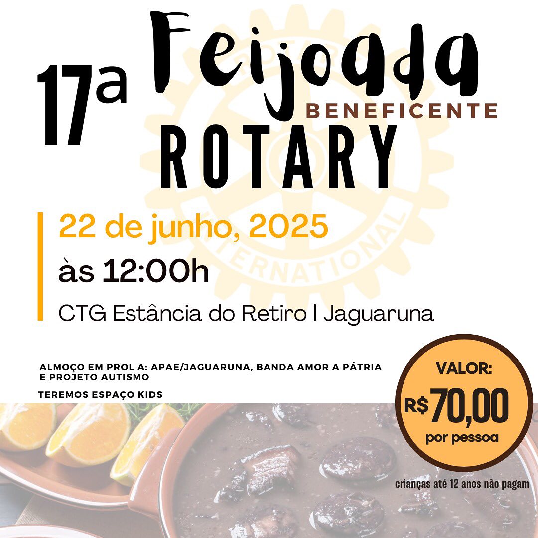 Vem aí em 22 de Junho de 2025 a 17ª Feijoada Beneficênte do Rotary Clube de Jaguaruna