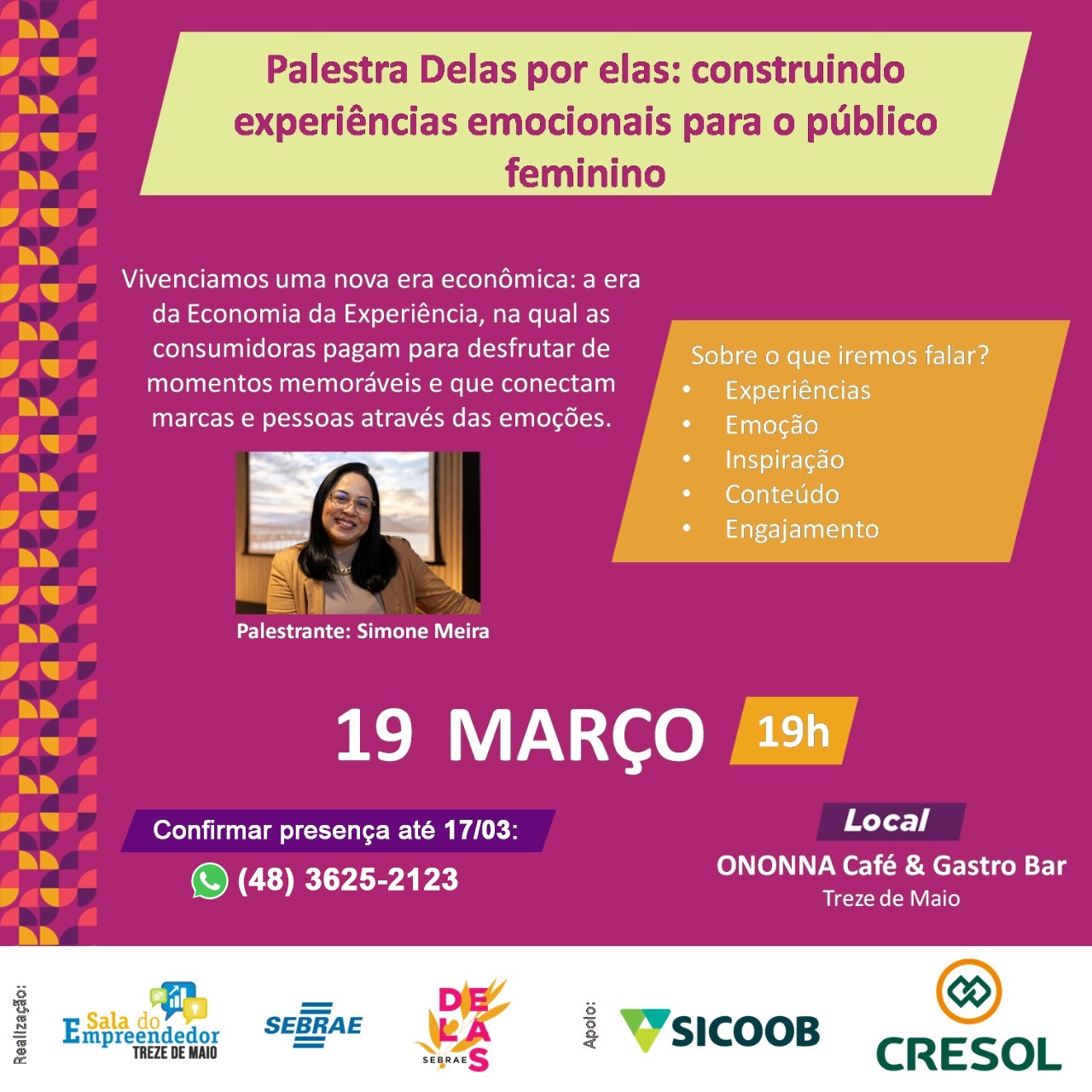 Vem aí em Treze de Maio Palestra Delas Por Elas Construindo Experiencias Emocionais