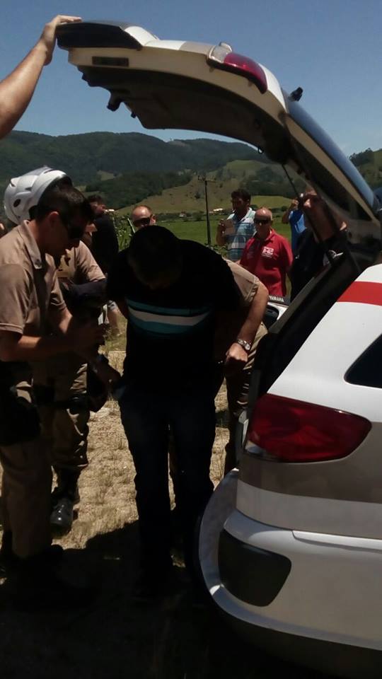 No final da manhã de hoje, 13/12/17, funcionários do Banco do Brasil de Gravatal suspeitaram de um homem que havia programado um saque no valor de R$ 16.000,00 reais para data de hoje e o documento de identidade apresentado parecia ser falso. Diante da suspeita os funcionários acionaram a Polícia Militar que em consultas aos sistemas verificaram que a pessoa do documento verdadeiro não era a pessoa que estava tentando sacar o dinheiro. Ao verificar a chegada da viatura da Polícia Militar o homem que aguardava no lado de fora do Banco em frente a um Bar fugiu correndo a pé em direção a SC-370 vindo a se esconder em um matagal. Com a chegada de apoio do Canil de Braço do Norte e demais guarnições o homem foi localizado e preso. Diante dos fatos foi dado voz de prisão ao criminoso e encaminhado para Delegacia de Gravatal para lavratura dos procedimentos cabíveis.