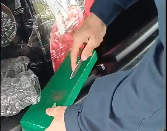 Dois pacotes da droga foram encontrados debaixo do banco do passageiro, local onde também estava escondido um facão. No porta-malas, os agentes localizaram uma caixa de papelão contendo a maconha. A PRF apreendeu ainda dois celulares, sendo que um deles foi encontrado destruído debaixo do banco do motorista.