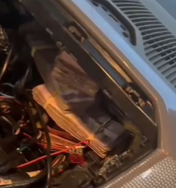 Durante a fiscalização do veículo, placas de Palhoça, os policiais desconfiaram de peças mal encaixadas na região do rádio, com marcas de manipulação. Ao desmontar a peça, encontram um compartimento com diversos maços de notas de real.
