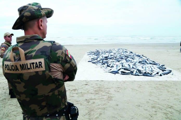 A Polícia Ambiental apreendeu cerca de sete toneladas de tainha durante uma fiscalização contra a pesca ilegal no Morro dos Conventos, em Araranguá, durante essa quinta-feira. A