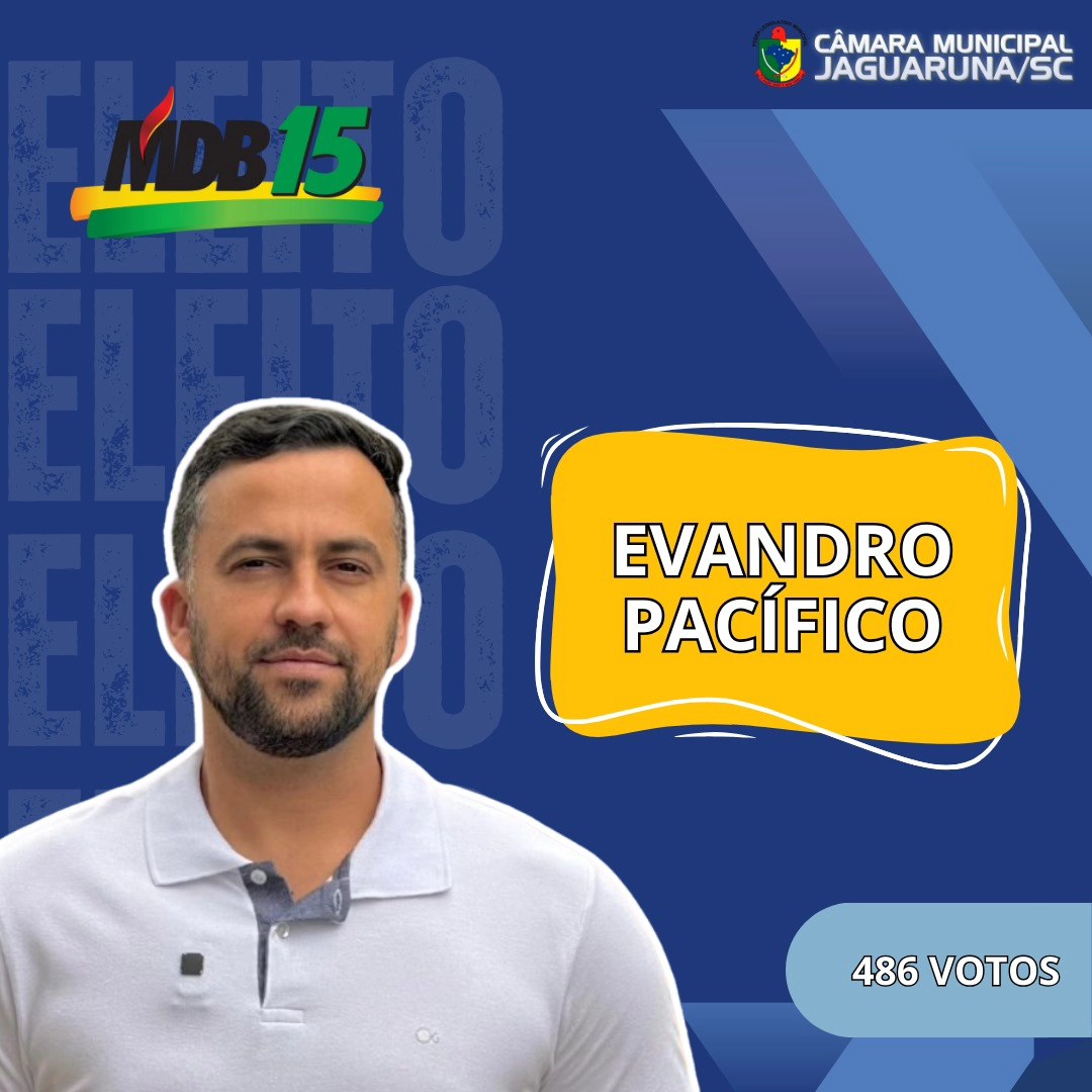 Eleito com 486 votos, o Engenheiro eletricista e empresário Evandro Pacífico (MDB) conquistou no último pleito eleitoral uma cadeira no legislativo Jaguarunense.
