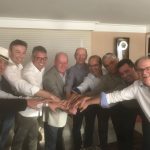 Na foto, senador Dario Berger/MDB, deputado Leonel Pavan (de chapeu)/PSDB, ex-prefeito Napoleão Barnardes/PSDB, deputado Mauro Mariani/MDB, deputado Marcos Vieira/PSDB, senador Paulo Bauer/PSDB, deputado Jorginho Mello/PR, governador Eduardo Moreira/MDB, deputado Valdir Cobalchini/MDB e senador Dalirio Beber/PSDB.