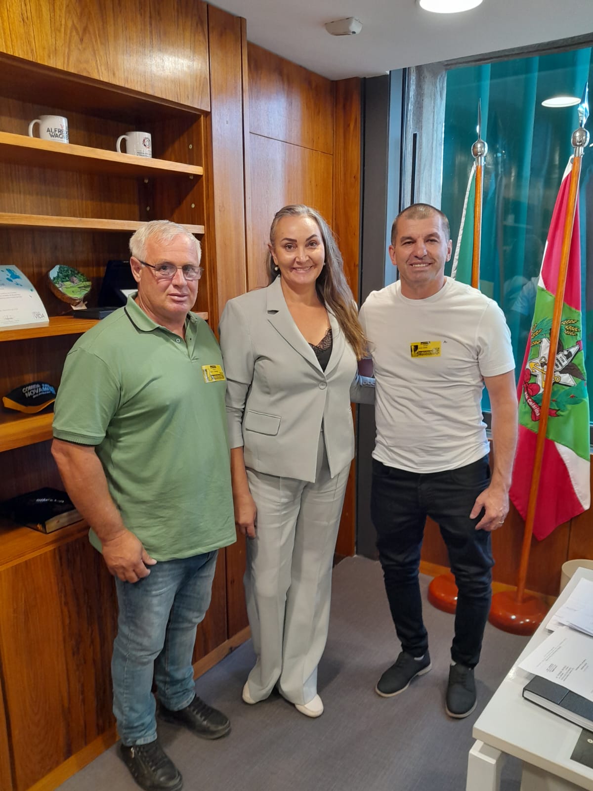 O prefeito de Treze de Maio, Nenem Bardini, acompanhado do vereador Fabio Rogério Fernandes (Fabinho) estão em Brasília em busca de recursos para o município. Durante a viagem, visitaram o gabinete da deputada federal Daniela Cristina Reinehr, onde apresentaram diversas demandas da cidade.