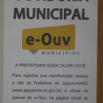 O Municipío quer ouvir você acesse www.jaguaruna.sc.gov.br e clic no banner do e-Ouv na pagina inicial do site e deixe a sua opimião.