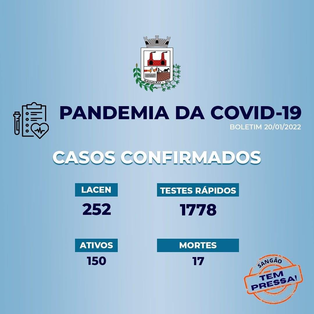 O número de casos de covid-19 confirmados no município de Sangão nos primeiros 20 dias de 2022 é de 150 ativos, segundo dados do painel mantido pela Secretaria Municipal de Saúde.