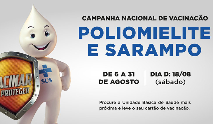 O dia D de mobilização nacional será sábado, 18 de agosto, quando os mais de 36 mil postos estarão abertos no país. A meta é vacinar, pelo menos, 95% das crianças para diminuir a possibilidade de retorno da pólio e reemergência do sarampo, doenças já eliminadas no Brasil. A madrinha da campanha deste ano é a Xuxa, eterna rainha dos baixinhos