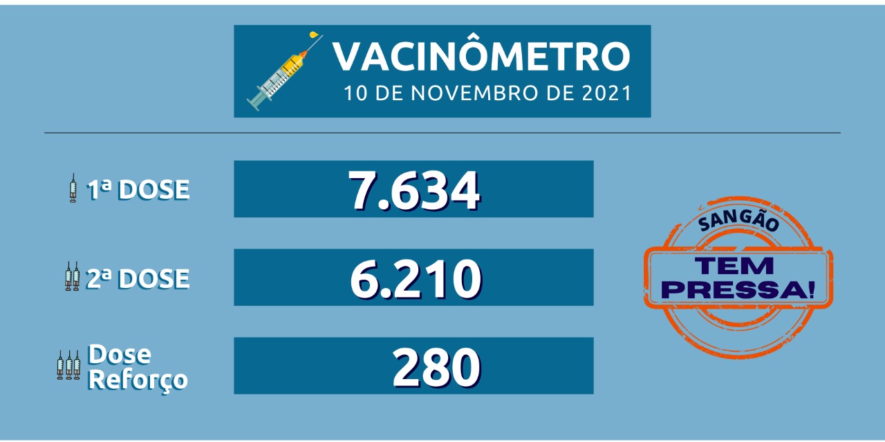 O boletim do “VACINÔMETRO de Sangão mostra que 7.634 pessoas tomaram a primeira dose de uma das vacinas disponíveis, enquanto 6.210 tomaram duas doses e outras 280 tomaram uma dose adicional para reforçar o quantitativo de anticorpos. Esses números indicam que mais de 70% do público alvo de Sangão já está vacinado com duas doses.