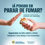 A Secretaria Municipal de Saúde de Jaguaruna promove o Programa Municipal de Controle do Tabagismo e oferece tratamento e informações importantes sobre essa doença que afeta milhões de pessoas no país.