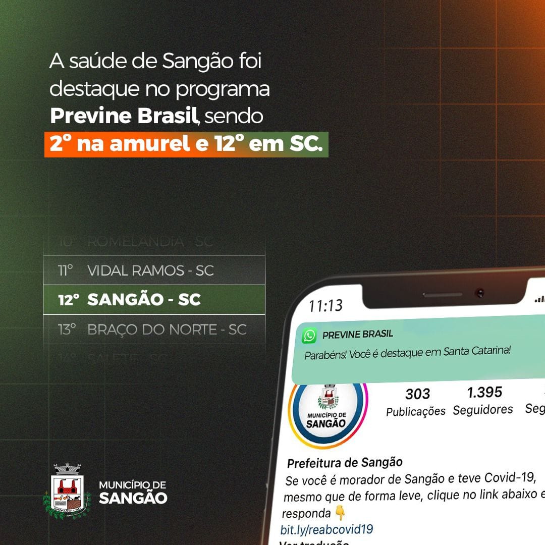 Saúde de Sangão mais uma vez se destacando, e agora é pelo o Programa Previne Brasil, aonde são advindos os recursos para a Saúde. É por meio dele que o financiamento federal chega aos municípios.