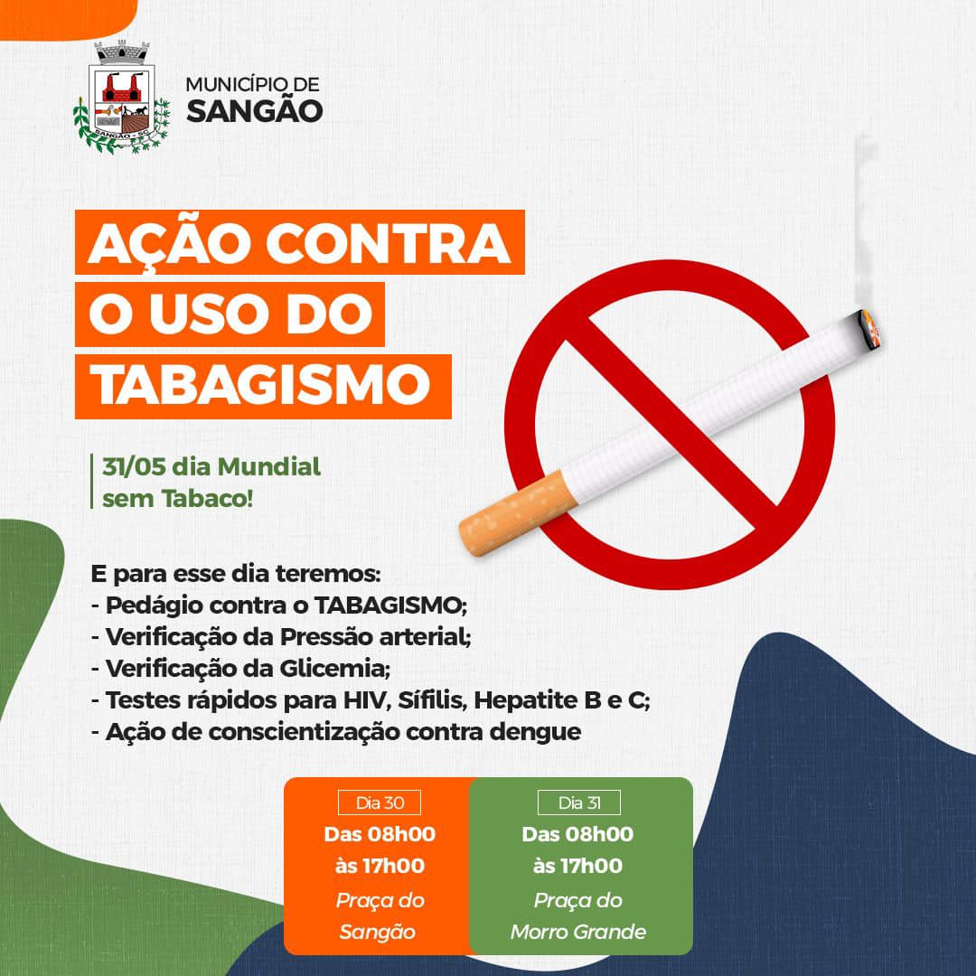 E para conscientizar os munícipes a Secretaria de Saúde de Sangão irá fazer uma Ação contra o uso do tabagismo, e aproveitando a oportunidade também terá uma ação Contra Dengue.