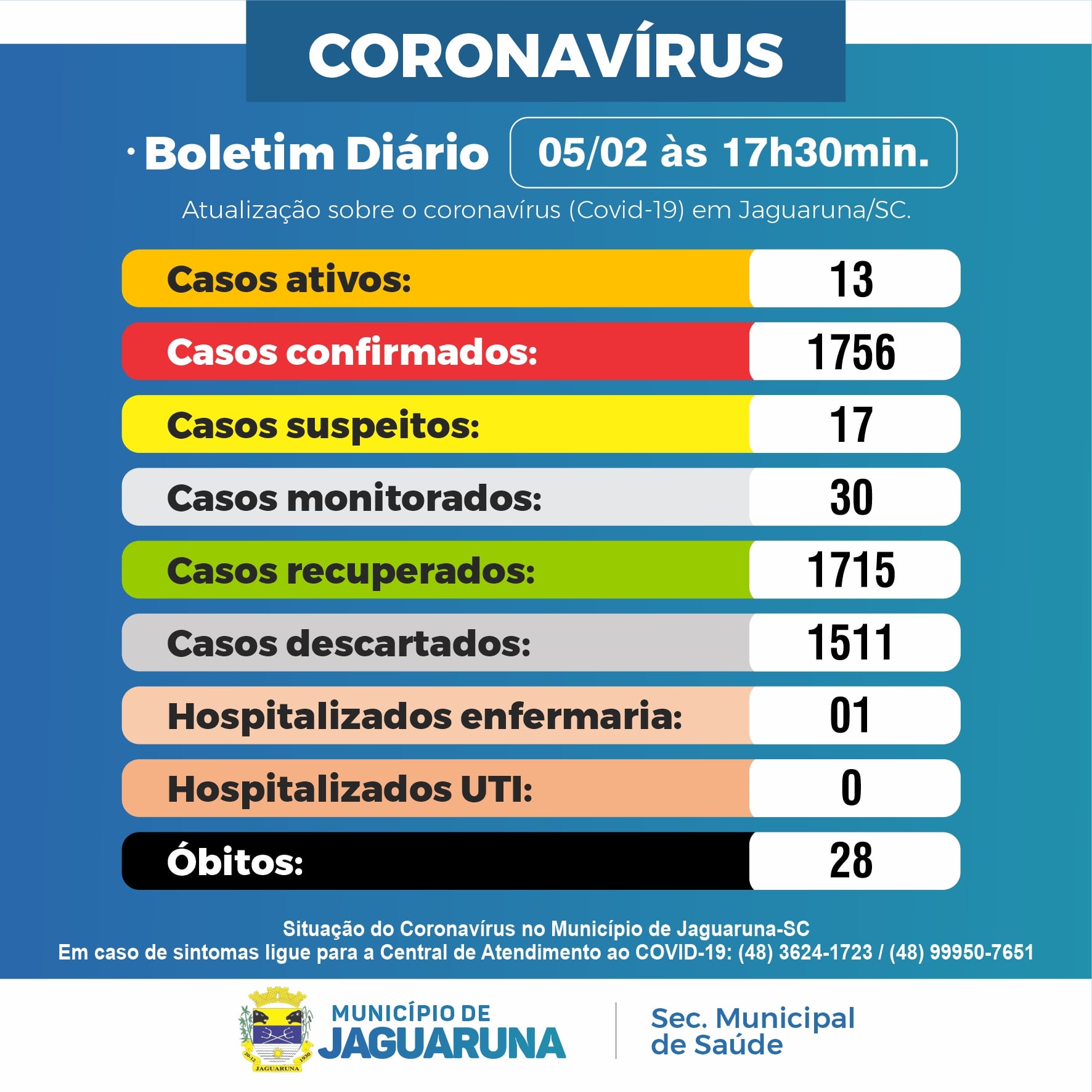 Secretaria Municipal de Saúde Atualiza os Números do Coronavirus deste dia 05 de Fevereiro de 2021