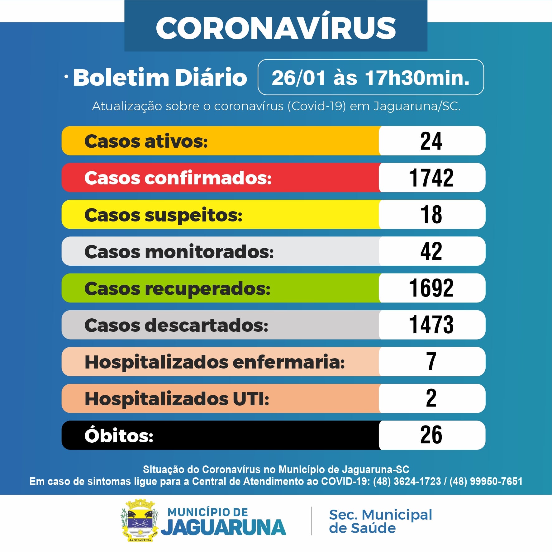 Secretaria Municipal de saude de Jaguaruna Atualiza os Números do Coronavirus em deste dia 26/01/2021