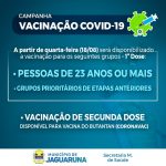 17agosto Secretaria Municipal dInicia a Partir desta Quarta Feira dia 18/08 Vacinação Covid-19 Idade 23 anos ou mais Jaguaruna Secretaria Municipal dInicia a Partir desta Quarta Feira Vacinação Covid-19 Idade 23 anos ou mais Fonte: Secretaria Municipal de Saúde de Jaguaruna Ascom:Prefeitura Municipal de Jaguaruna João Carlos Idalencio Autor