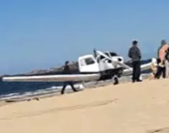 Com o sucesso do pouso forçado, mesmo em uma faixa de areia, os tripulantes não ficaram feridos, dizem testemunhas.