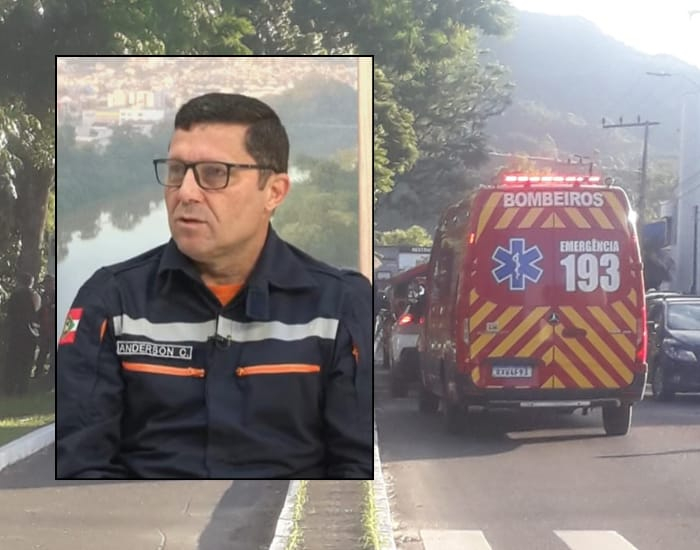 Trata-se do sargento Anderson Martins Cardoso, coordenador regional da Defesa Civil de Tubarão.