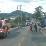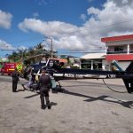 Um masculino de 59 anos sofreu uma queda de aproximadamente três metros de altura, a vítima trabalhava num poste e ao cair foi atingido por objeto perfurante causando grande perda de volume sanguíneo. A vítima se manteve consciente e apresentava pneumotórax. Devido a complexidade da lesão foi solicitado apoio do resgate aeromédico Sarasul para estabilização e transporte da vítima até o hospital de referência HNSC em Tubarao. A equipe contou com apoio da USA 02 do Samu para transporte da vítima entre o campo de pouso até a unidade hospitalar.