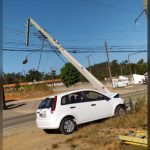 Um acidente envolvendo um veículo Fiesta foi registrado nesta tarde (14/03) na Rod SC Arno Arnaldo Nápoli no bairro Encruzo em Jaguaruna por volta das 16:00h próximo ao quartel dos Bombeiros Voluntários De Jaguaruna. No automóvel havia apenas uma ocupante, uma feminina maior de 48 anos que conduzia o veículo, relatou que perdeu o controle na curva saindo da pista e colidindo com o poste de energia elétrica. A condutora não referia queixas sendo atendida no local, porém não quis ser conduzida ao hospital assinando recusa de atendimento. Com a colisão o poste acabou quebrando e ficou suspenso pelos fios. No impacto a energia foi desligada, foi realizado contato com a Celesc para que solucionem o problema, tendo em vista que o poste apresenta perigo com rompimento da fiação podendo cair a qualquer momento. Nossa guarnição segue até o momento fazendo a segurança da via e desvio do trânsito juntamente com PRE.