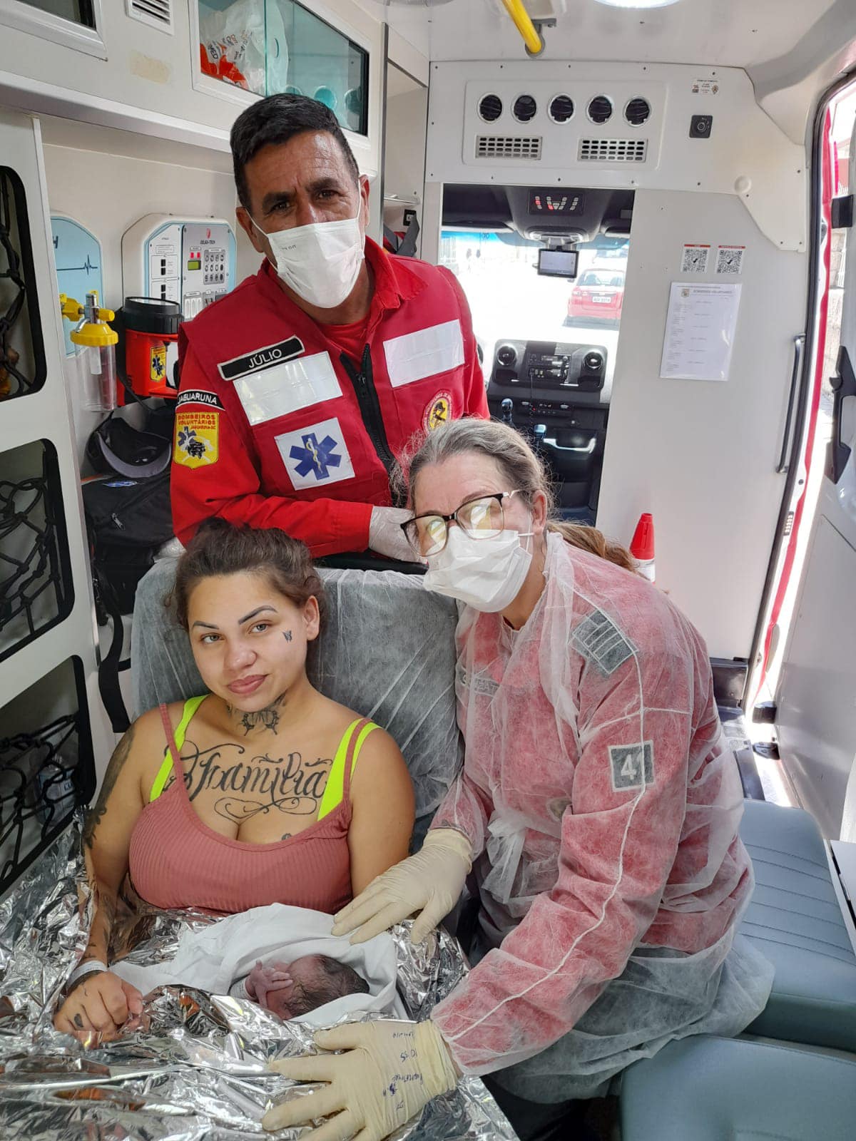 Neste sábado 03/02 por volta das 10:10h da manhã os bombeiros voluntários da comaca de Jaguaruna ,foram acionados para o atendimento de uma gestante com 35 semanas, segunda gestação na localidade do bairro Camacho em Jaguaruna, onde a mesma veio passar o final de semana. Durante o deslocamento fomos informados que a gestante já teria entrado em trabalho de parto e ao chegar no local o bebê havia acabado de nascer, com auxílio de um familiar. Nossa guarnição iniciou atendimento, realizou o corte do cordão umbilical, cuidados com o recém nascido e a mãe, em seguida ambos foram encaminhados ao hospital mais próximo HCJ em Jaguaruna para avaliação médica e posteriormente encaminhado ao hospital HNSC em Tubarão.