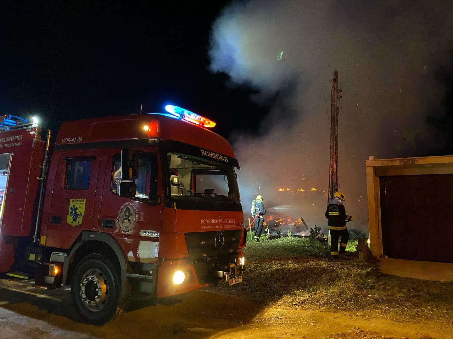 Na última sexta feira 07/10 por volta das 20:50h os bombeiros voluntários de Jaguaruna Na última sexta feira (07/09 os bombeiros voluntários de Jaguaruna ,foram acionados para atender um incêndio em residência na Rua Das Pinheiras, Bairro Campo Bom em Jaguaruna. Chegando no local foi constatado que a casa já havia sido consumida pelo fogo, foi realizado extinção do incêndio e rescaldo no local. No momento não havia morador na residência, segundo populares no local a casa não estava habitada. As causas do incêndio não foram apuradas.
