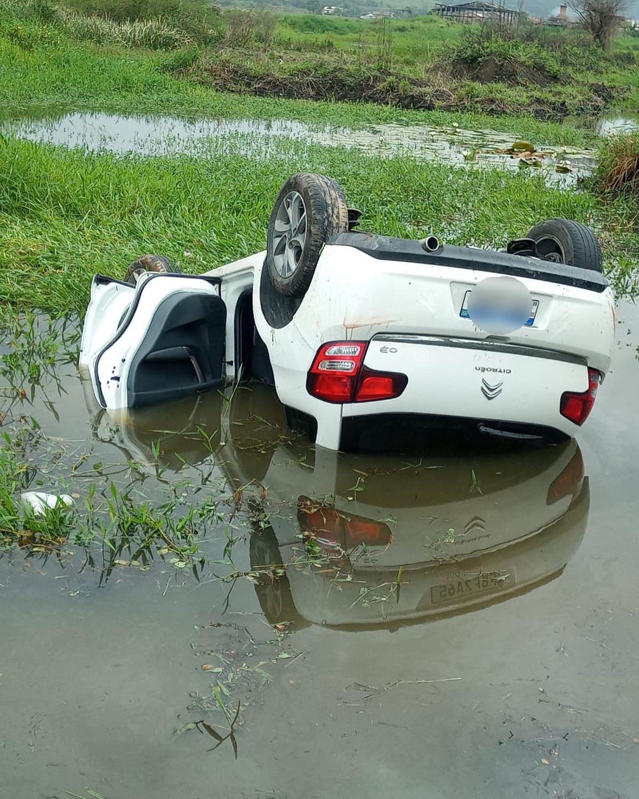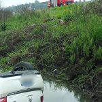 Neste domingo  dia 10/04 as 11:19h da manhã os bombeiros voluntáriuos da comarca de Jaguaruna.receberam  uma solicitação para atender um acidente de trânsito na localidade de BR 101 – KM 364 bairro Garganta em Sangão. Chegando no local foi constatado um capotamento de um veículo C3 com placa de Criciúma onde o veículo ficou submerso. No automóvel haviam dois ocupantes que foram retiradas do carro por populares, a condutora de 27 anos foi encontrada pela equipe da CCR em grau 5 de afogamento onde foi conduzida por eles para o hospital de Içara. A segunda vítima, passageira de 26 anos com suspeita de fratura no ombro e punho esquerdo e edema na cabeça sendo conduzida pela nossa equipe para o hospital HNSC em Tubarão. Segundo informações da passageira a condutora teve um mal súbito perdendo controle do veiculo.