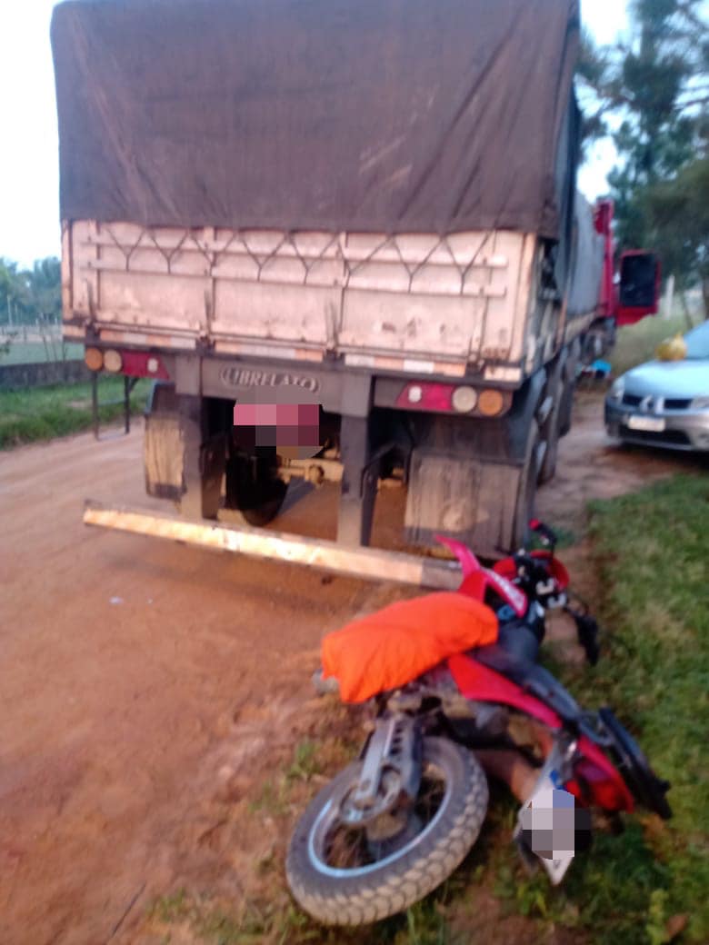 Nesta sexta feira 22/07 por volta das 06:34h fomos acionados para atender um acidente de trânsito na Rua Alicio José Bitencourt no bairro Arroio Corrente em Jaguaruna. Chegando no local a guarnição se deparou com o piloto da moto, um masculino de 55 anos consciente deitado a beira da via. O mesmo relatando dor na região lombar e punho esquerdo. Apresentava sangramento na boca e nariz, deformidade e inchaço no punho esquerdo. Realizado imobilização do membro com suspeita de fratura, protocolado e encaminhado ao hospital HCJ em Jaguaruna. O condutor do caminhão não referia queixas e não foi conduzido ao hospital.
