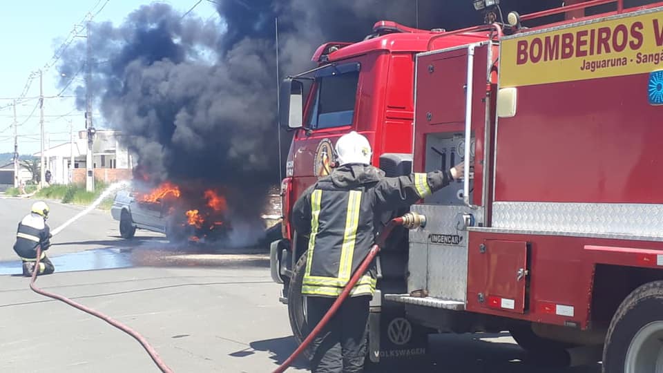 Os bombeiros voluntários de Jaguaruna ,foram acionados para atender a um incêndio em veículo Clio com placas de Criciúma, de propriedade do ferro velho situado às margens da Rodovia Arno Arnaldo Napoli – SC 442, bairro Encruzo próximo ao Neymar motos em Jaguaruna, foi registrado hoje (13/02) as 18:21h. Ao chegar no local as chamas estavam concentradas no interior do veículo, foi realizado combate ao fogo até extinção e deixado a cena aos cuidados da PM. O proprietário chegou minutos depois, as causas do incêndio não foram identificadas.