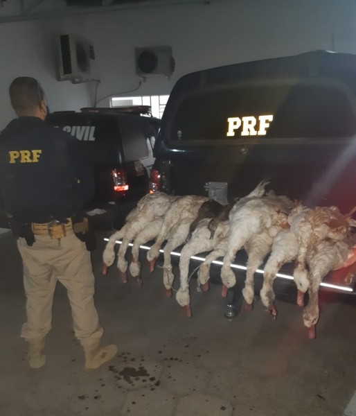 A ocorrência foi registrada por volta das 20h20. Os ocupantes do veículo disseram que estavam em uma pescaria, mas os policiais encontraram, no porta-malas, 14 aves abatidas, sendo 12 gansos e duas marrecas piadeiras.