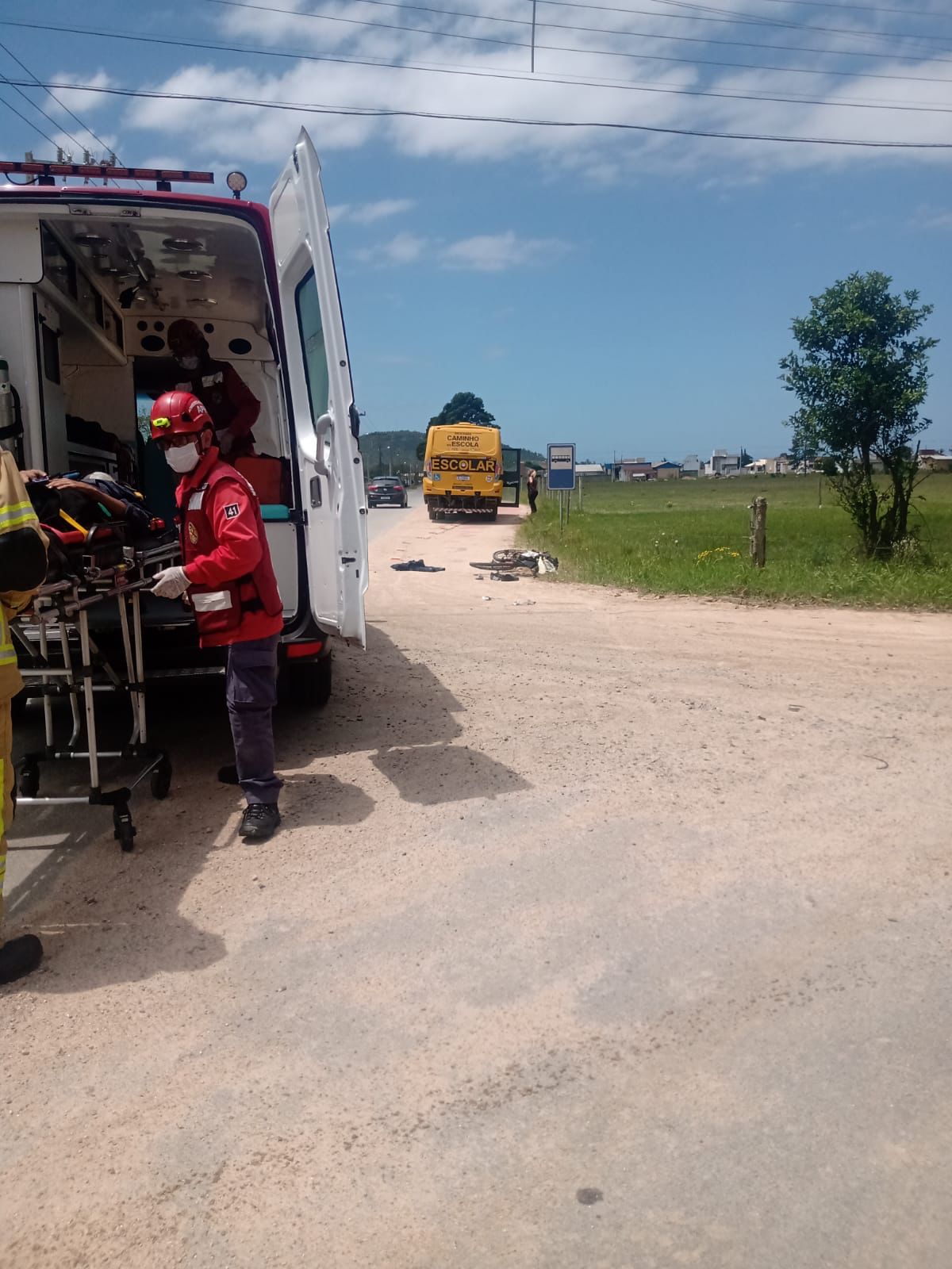 Na última segunda feira 06/11 os bombeiros voluntários da comarca de Jaguaruna foram acionados para atender um acidente de trânsito na Rod municipal Tobias Inocêncio Ricardo no cruzamento com a área industrial em Jaguaruna envolvendo uma bicicleta e um ônibus, vítima condutor da bicicleta um masculino 68 encontrava-se em decúbito dorsal relatando dores em membros inferiores, escoriações suspeita de fratura em arcos costais consciente orientado imobilizado e conduzido ao hospital HCJ em Jaguaruna. A monitora do ônibus escolar de 44 anos também precisou ser conduzida ao hospital em estado de choque, já a condutora do veículo nada sofreu e assinou recusa de atendimento. Polícia Militar esteve no local dando apoio na ocorrência.