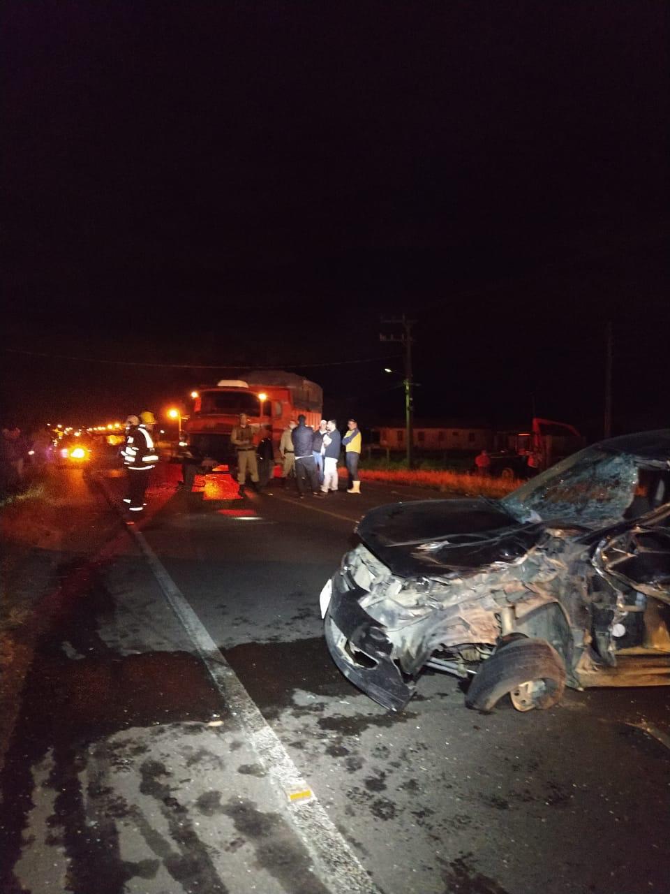 Acidente grave foi registrado na noite desta segunda feira  (25/05) por volta das 18:29h  os bombeiros voluntários foram acionados ,para se dirigirem a  SC 100 Rod Claudino Abel botega,bairro Morro bonito em Jaguaruna. Uma colisão carro x caminhão, no veículo corsa com placa de Tubarão uma vítima masculino maior encarcerado, com suspeita de TCE grave, consciente e desorientado com cortes corto contuso na região da cabeça e pescoço. Foi realizada a retirada da vítima imobilizando em maca rígida e encaminhado com urgência ao hospital HCJ de Jaguaruna. No caminhão com placas de Sangão haviam dois ocupantes, o condutor de 56 anos um passageiro de 23 anos nada sofreram, assinaram recusa de atendimento e não quiseram ser conduzidos ao hospital. A polícia militar de Jaguaruna esteve no local dando apoio na sinalização e segurança da cena.