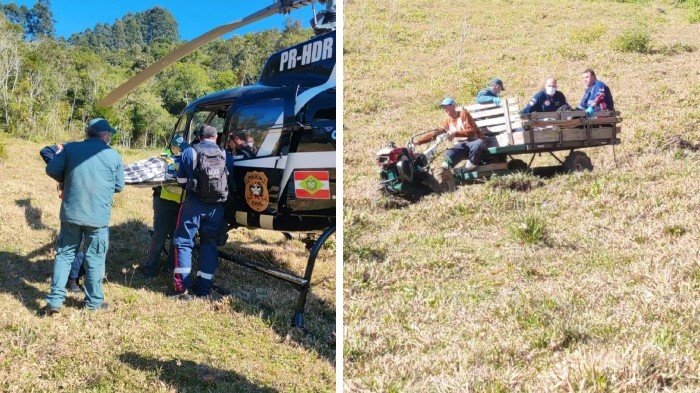 Com o auxílio do helicóptero, o homem foi encaminhado ao hospital Nossa Senhora da Conceição em Tubarão, que é referência em trauma na região.