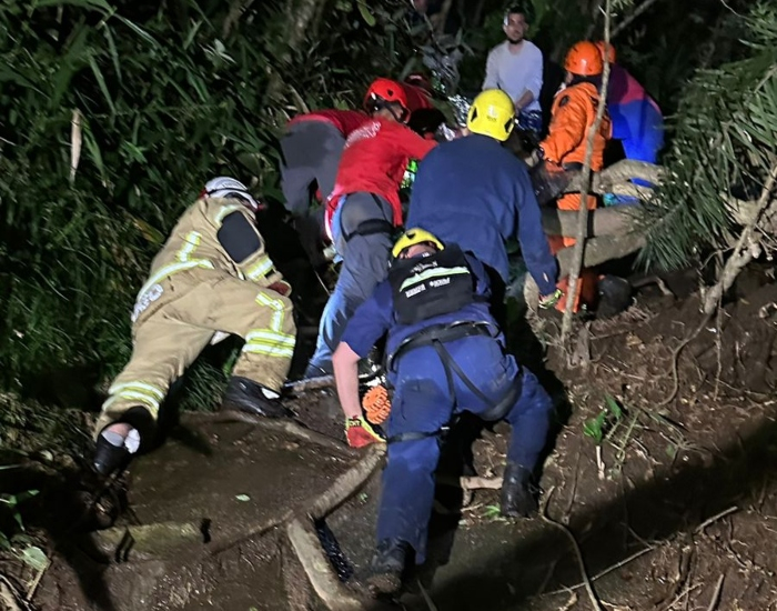 O helicóptero Arcanjo dos bombeiros foi acionado, porém, não conseguiu fazer o içamento da vítima, por já estar escuro. A vítima já estava imobilizada e preparada em uma maca mamute.