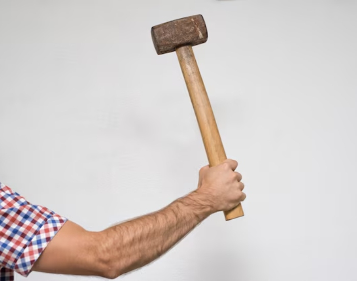 Ao chegar, o homem se recusou a ficar com o próprio filho e fez ameaças com uma marreta, arremessando o objeto em direção a mulher e em seguida contra o carro dela, causando danos.