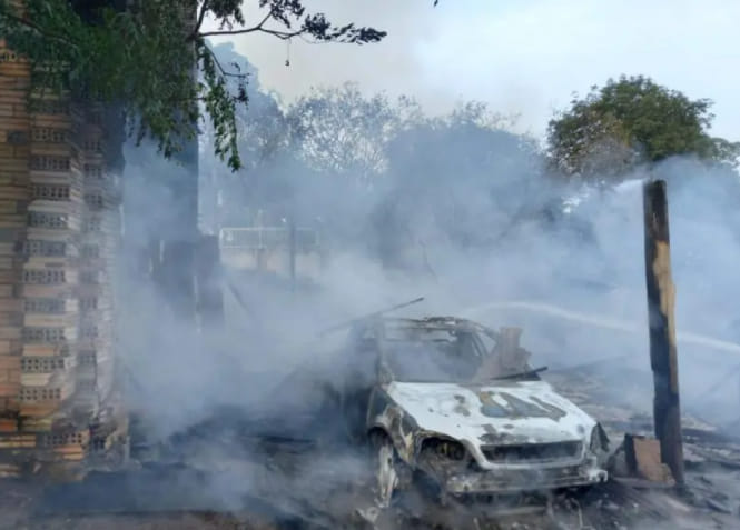 Nas instalações estavam um carro e uma moto, que ficaram completamente destruídos. O prejuízo estimado é de cerca de R$ 100 mil. Após orientações, o local ficou sob responsabilidade do proprietário.