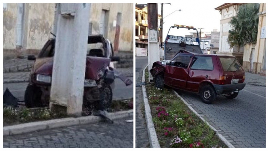 O condutor de um Uno abandonou o veículo após colidir em um poste, no Centro de Laguna. O acidente ocorreu na madrugada deste sábado (13), no canteiro central da avenida Colombo Machado Salles.