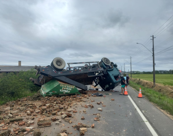 Um homem de 46 anos foi conduzido ao hospital com fortes dores após capotar um caminhão com entulho na tarde desta segunda-feira, dia 23. O acidente ocorreu no bairro Naspolini, em Morro da Fumaça.