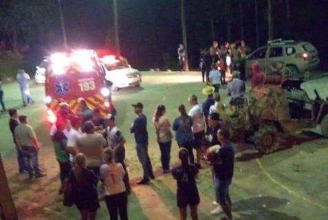 Segundo o Corpo de Bombeiros, a vítima estava sentada em uma arquibancada, quando o condutor da gaiola perdeu o controle do veículo e atingiu a mulher. Ela foi arremessada por oito metros e sofreu fratura do membro inferior, tórax e hemorragia interna. A vítima foi encaminhada ao Hospital Santa Teresinha de Braço do Norte.
