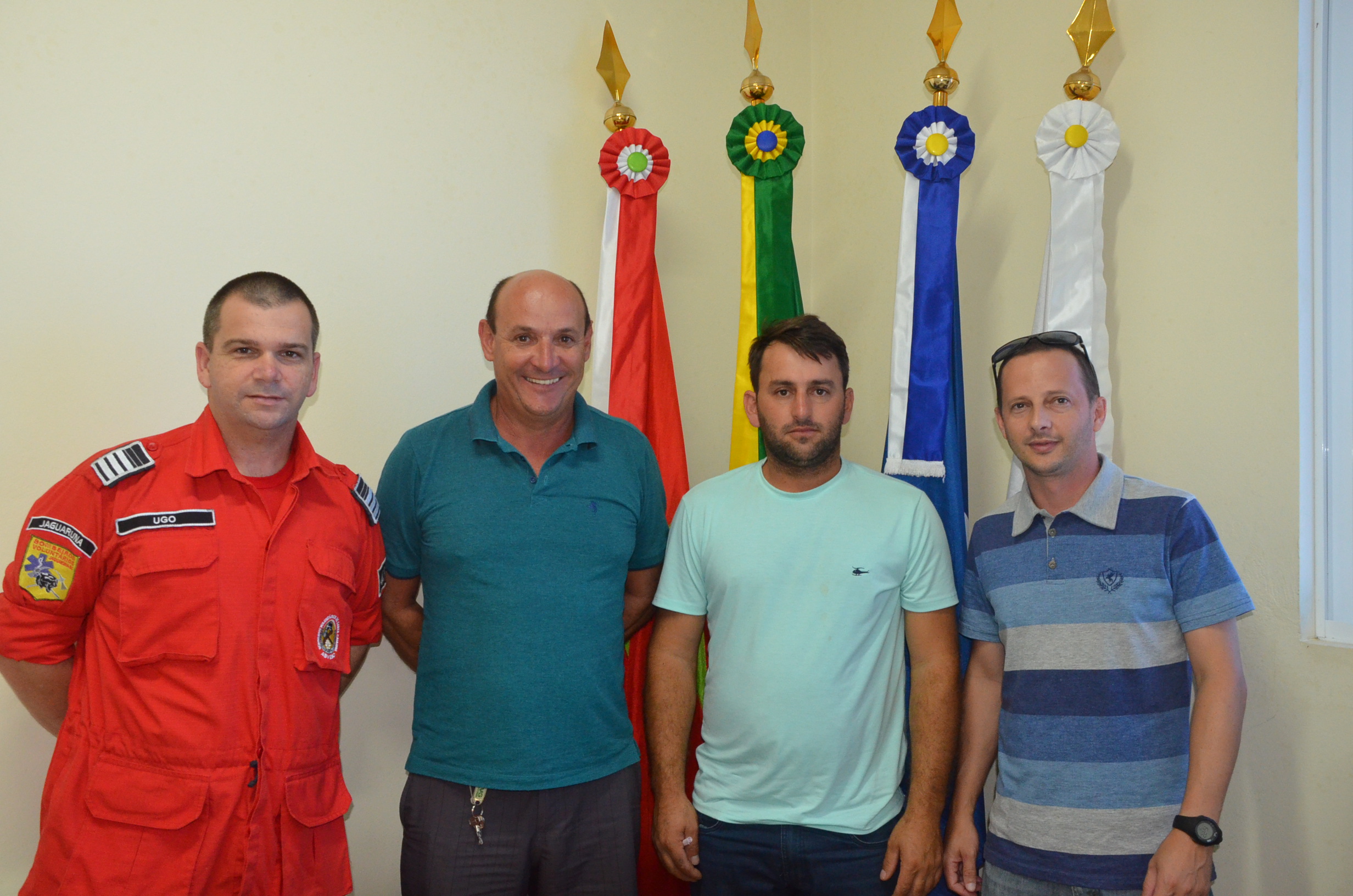 O Presidente da Câmara Municipal de Vereadores Laerte Silva Santos,recebeu na tarde desta quarta feira(31) em seu gabinete,o Presidente da associação dos serviços sociais voluntários de Jaguaruna Evaldo Duarte Espíndola.Evaldo estava acompanhado do comandante dos bombeiros voluntários Hugo Leonardo Medeiros,e Anderson Nandi diretor da entidade.O objetivo da reunião entre os presidentes,versou sobre  a parceria já firmada anteriormente com  presidentes do legislativo anteriores,com objetivo do legislativo contribuir com o andamento da obra do quartel dos bombeiros voluntários que está em andamento.