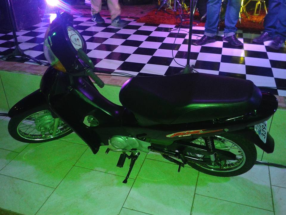 Esta moto biz ano 2005 sera sorteada no dia 30 de abril véspera de feriado no risca clube com banda musicamp, adquira cupons nos bailes no risca e no campo bom até o dia do sorteio ok